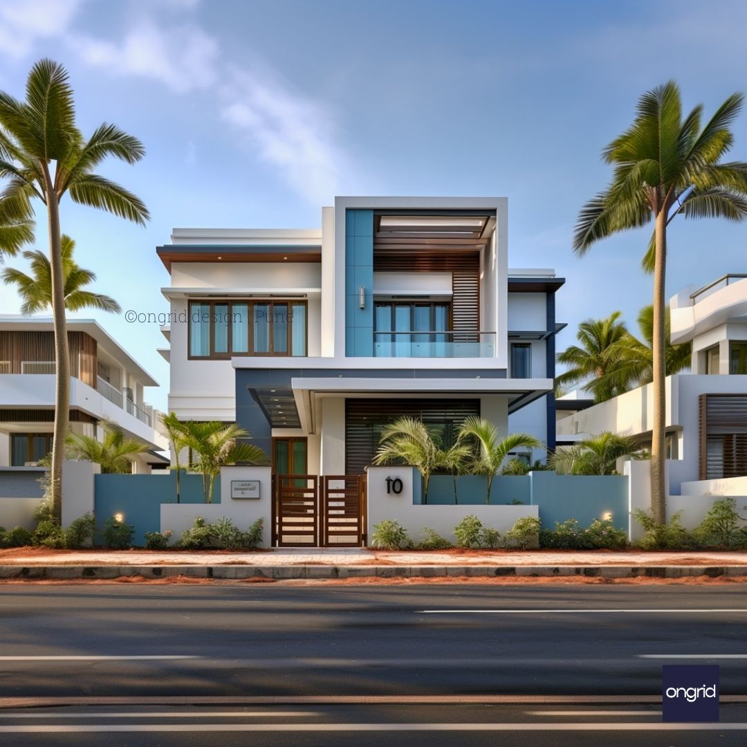 हमारे नवीनतम डुप्लेक्स एलिवेशन डिज़ाइन में आधुनिक सुंदरता के साथ जुड़े तटीय आकर्षण की खोज करें । यह शांत वास्तुशिल्प टुकड़ा बोल्ड नीले लहजे, प्राकृतिक लकड़ी की फिनिश और एक ऐसे डिजाइन के साथ लुभाता है जो स्टाइलिश शांति का प्रतीक है, जो आवासीय सौंदर्यशास्त्र के लिए एक नया मानक स्थापित करता है।
