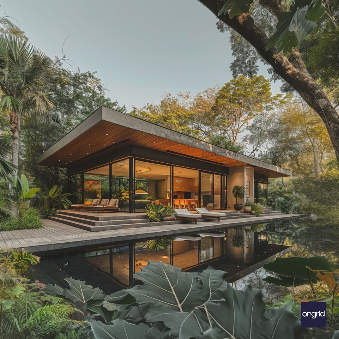 अशा क्षेत्रात पाऊल ठेवा जिथे वास्तुकला आणि निसर्ग एकत्र येतात. हे एकमजली घर, त्याच्या मोठ्या काचेच्या खिडक्या आणि कोनदार सपाट छप्पर , एक असे अभयारण्य देते जे त्याच्या हिरवळीच्या सभोवतालच्या शांततेचे प्रतिबिंबित करते.