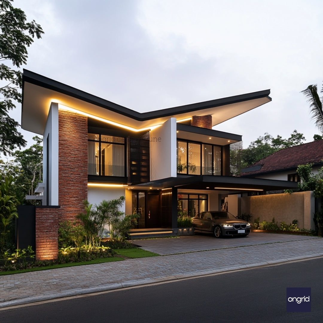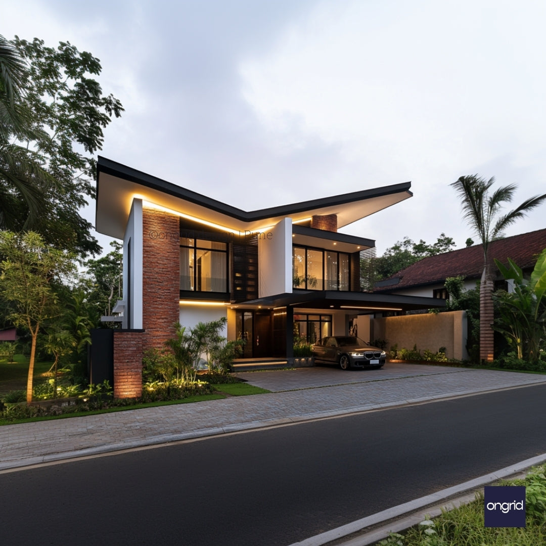 Welcome to Ongrid.design's latest masterpiece - a modern tropical duplex that redefines contemporary living in Maharashtra and Karnataka. This stunning two-story home combines sleek design with family-friendly features, perfect for those seeking a resort-style oasis on a 40x60 or larger plot.