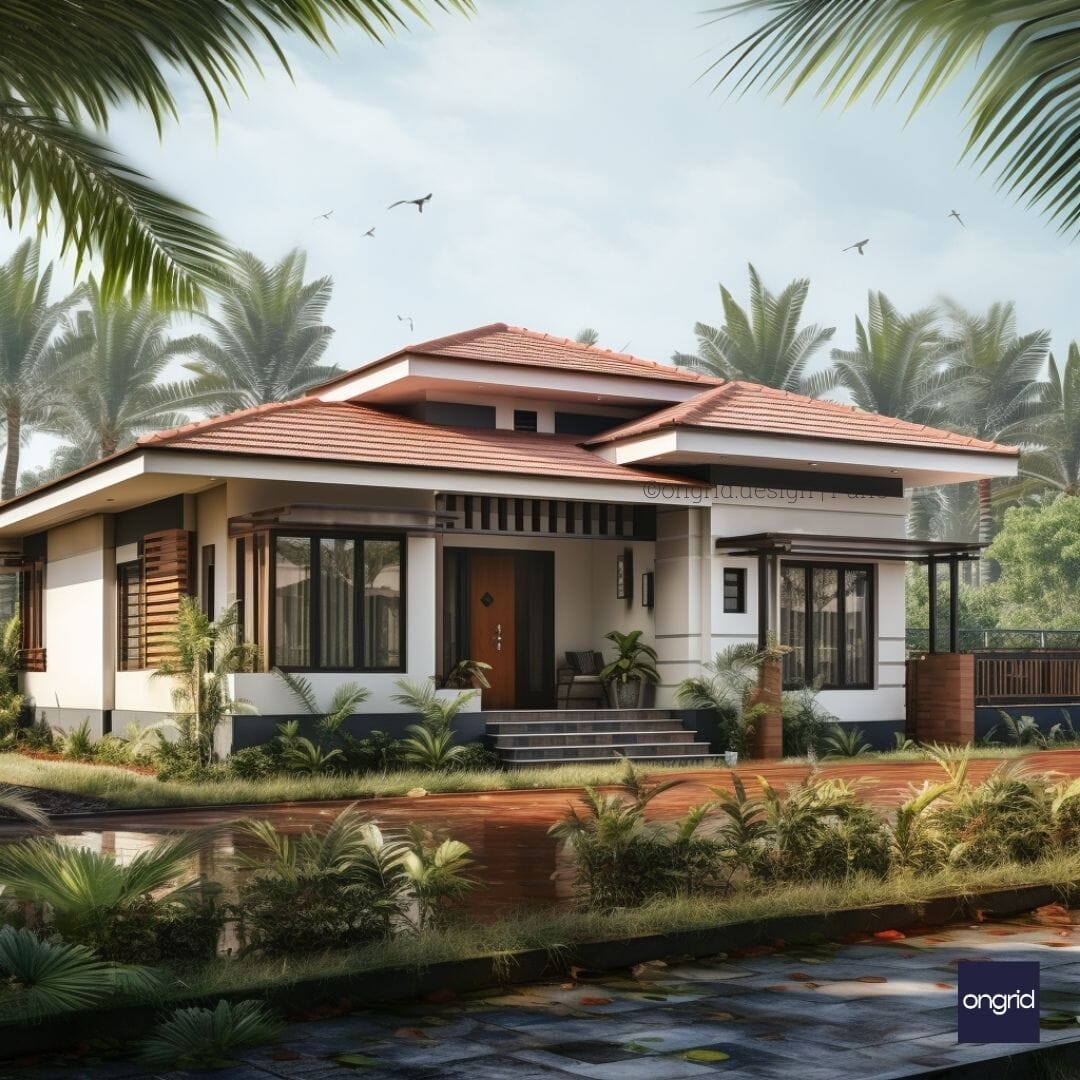 Red Tile Roof with Hipped Shape: Drawing inspirations from Mediterranean designs, the roof captures attention with its red tiles, sloping downward on all four sides.