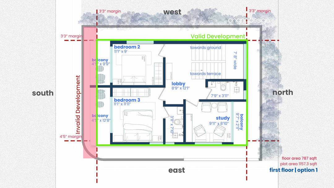 Understand how a built-up constraint floor plan can be made for 3 bedroom Duplex home.