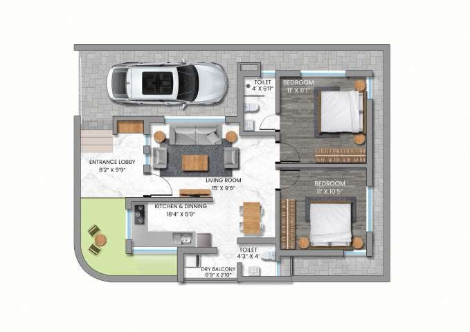 A Beautiful Home with 2 Bedrooms designed for Mr Prasanta from Kolkata